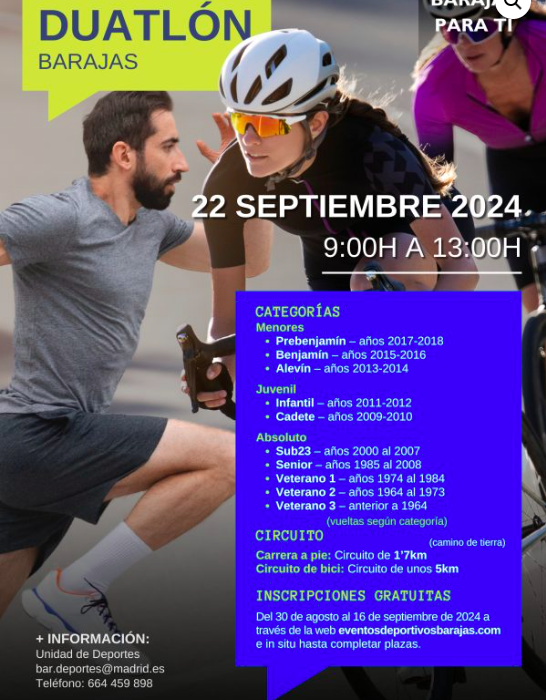 INSCRIPCIONES GRATUITAS: del 30 de agosto al 16 de septiembre a través de la web eventosdeportivosbarajas.com o in situ hasta completar plazas.